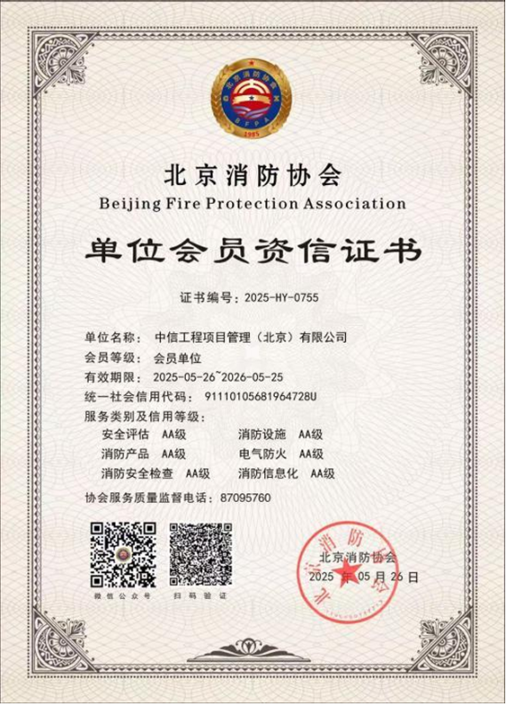 2025年5月26日,中信项目管理公司正式获准加入北京消防协会,成为其会员单位。